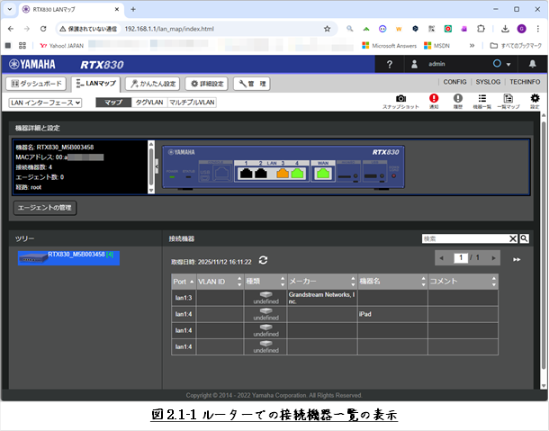 図2.1-1YMAHA RTX830でのLAN内接続機器一覧の表示例を示します