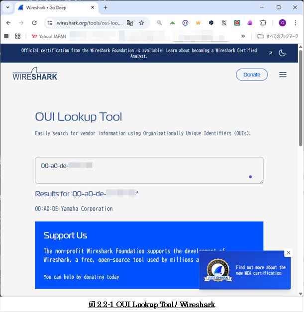 MACアドレスの最初の3バイトOUI: Organizationally Unique Identifier)で