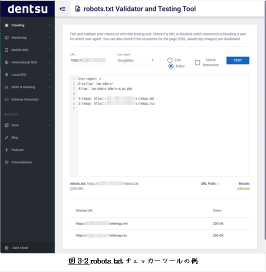 下に、robots.txtチェッカーツールの一例を示します。