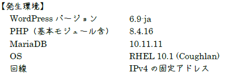 2025年12月30日、下に示すような環境下の自宅WordPressサーバーにおいてにおいて、