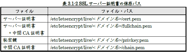 SSLサーバー証明書の発行に際しては、表3.1-1に