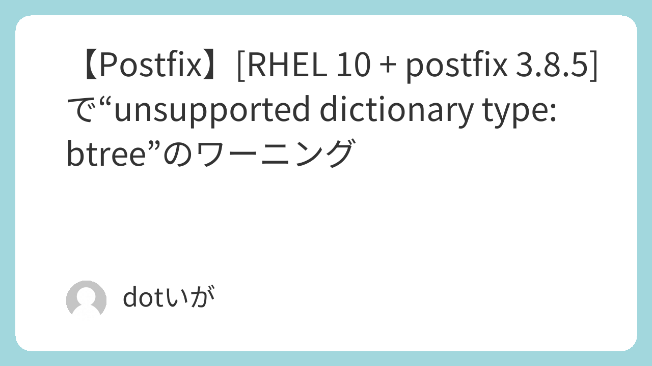 [RHEL 10 + postfix 3.8.5]のPostfixログで、次のワーニングが残っている。