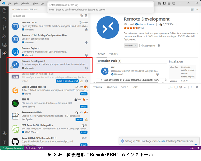 2.2 拡張機能“Remote SSH”のインストール